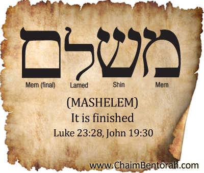 If we apply that to the word “redeem,” it might sound like “completely, irreversibly, and unequivocally set free from captivity. God and God alone can do that – even for us (etiam pro nobis) (↔ Learning Link) Now, some may protest that Jesus certainly didn’t say that in Greek and that most likely it was in Aramaic, or even Hebrew. Fair enough, then, the Aramaic word for “it is finished” (See John 19:30) is משלם Mashelem. In Aramaic it can be construed to mean complete submission, e.g., “everything that needed to be done has been done” and all proper relationships have been completely restored. I definitely like that notion!